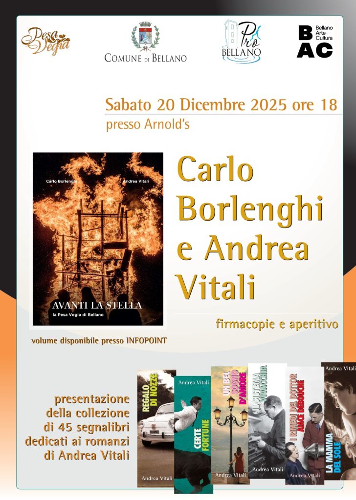 Presso Arnold’s, Carlo Borlenghi e Andrea Vitali presenteranno il volume Avanti la Stella. La Pesa Vegia di Bellano, un racconto intenso e suggestivo che restituisce il valore simbolico e collettivo di una delle tradizioni più identitarie del paese.