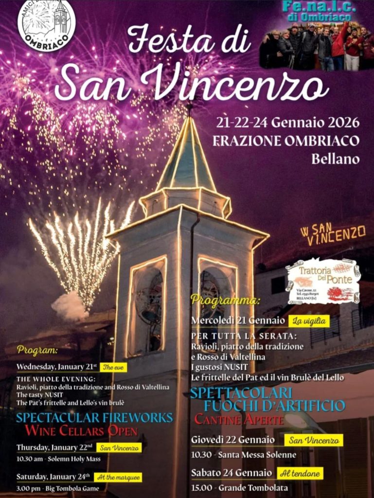 La frazione di Ombriaco di Bellano si prepara a celebrare la tradizionale Festa di San Vincenzo, in programma nei giorni 21, 22 e 24 gennaio 2026. Un appuntamento molto sentito dalla comunità, che unisce momenti religiosi, convivialità e valorizzazione delle tradizioni locali.