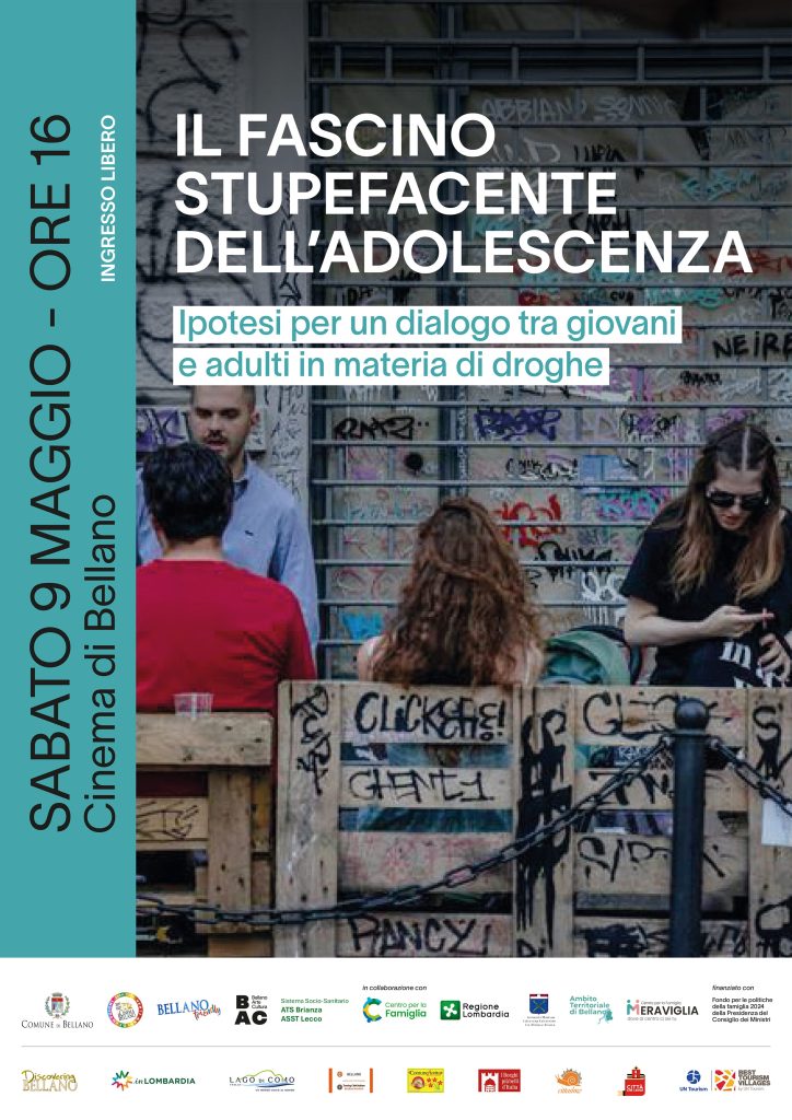 Il secondo appuntamento è previsto per sabato 9 maggio 2026 alle ore 16.00 al Cinema di Bellano con ingresso gratuito, lo spettacolo “Il fascino stupefacente dell’adolescenza. Ipotesi per un dialogo tra giovani e adulti in materia di droghe”.