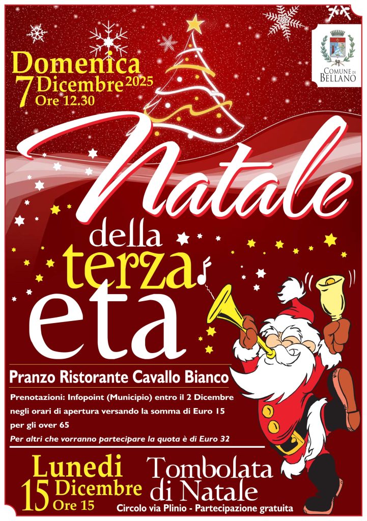 Prenotazioni e pagamento entro il 2 dicembre presso Infopoint Bellano: infopoint@comune.bellano.lc.it / +39 0341 1570370