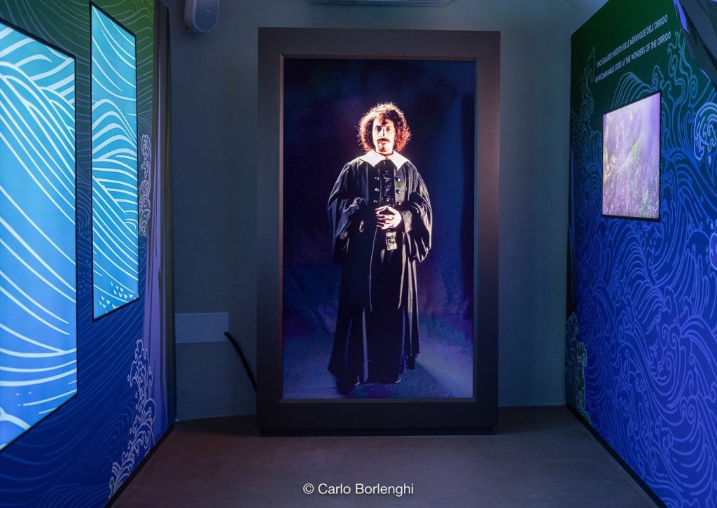 De bezoeker wordt verwelkomd door een welkomstvideo van de historische figuur Sigismondo Boldoni: een illustere en historische inwoner van Bellano.